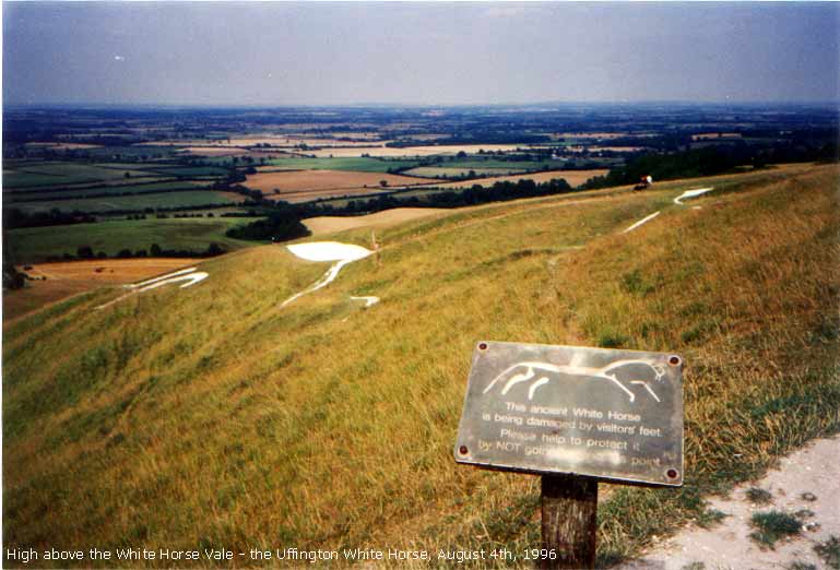 Well, anyway, when I had made my pictures I turned back and we went back to Frome. This was the last time I went to see Wansdyke. Our last week was based in Oxford. We visited the hill-forts of Barbury and Liddington Castle later that week, closing off with a return to Uffington Castle and the ancient White Horse (click here to enlarge). |